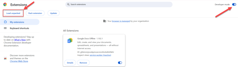 1. Bật Developer Mode ở góc trên cùng bên phải