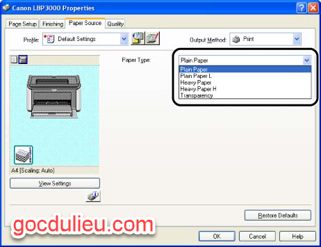 Tại mục Paper Type, bạn chọn loại giấy tương ứng: