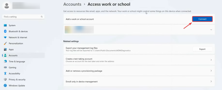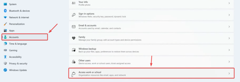 - Bước 2: Chuyển đến Accounts và chọn Access work or school.