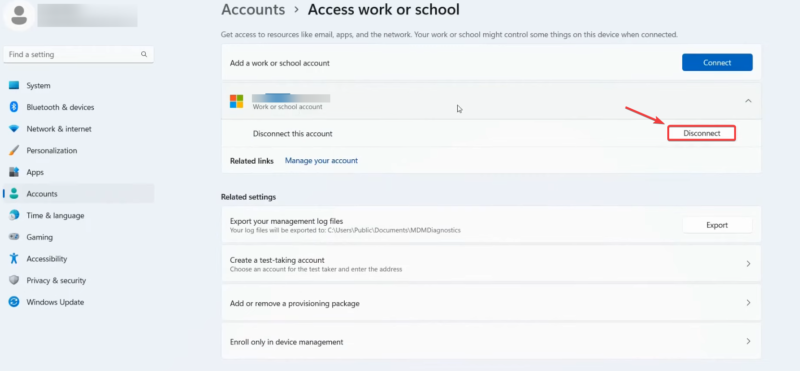 - Bước 5: Sau khi khởi động lại, quay lại Settings > Accounts > Access work or school.
