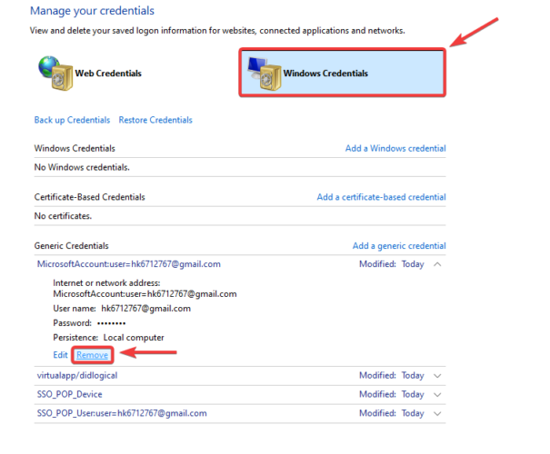 - Bước 2: Chọn Windows Credentials.