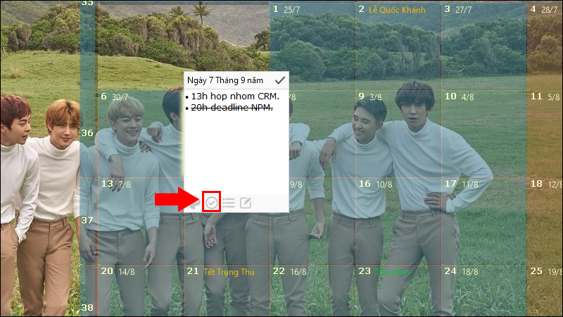 • Ghi chú trực quan, quản lý công việc dễ dàng: Chỉ cần nháy đúp chuột vào một ngày bất kỳ để thêm ghi chú, sự kiện hoặc tạo danh sách công việc cần làm. Bạn còn có thể đánh dấu các mục đã hoàn thành để theo dõi tiến độ.
