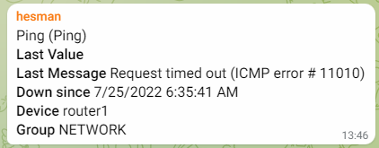 Bạn có thể tạo một nhóm trong Telegram và thêm con bot vào nhóm. Sau đó, truy cập lại đường link getUpdates ở bước 2 để lấy ID của nhóm, rồi điền vào mục chat_id trong Postdata của PRTG. Lúc này, khi có sự cố mạng, bot sẽ tự động gửi thông báo vào nhóm, giúp cả team cùng nắm được thông tin.