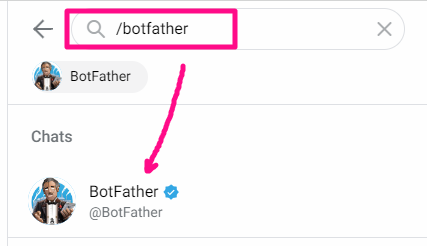 Mở ứng dụng Telegram và tìm kiếm /botfather, sau đó chọn nick có tick tròn xanh (tài khoản chính thức của Telegram).