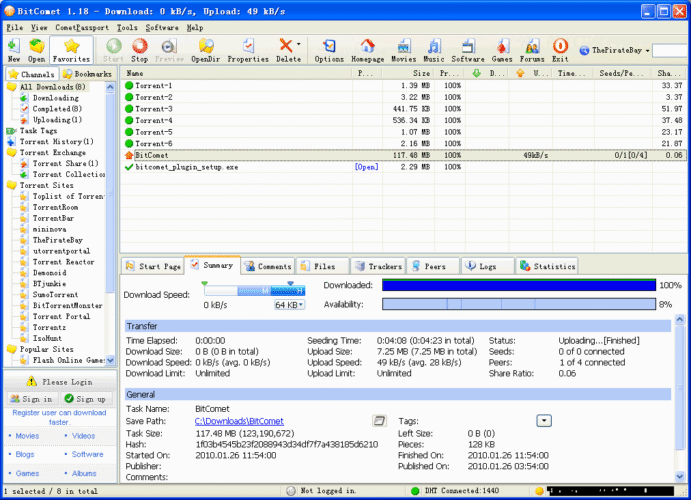 Phần mềm download miễn phí BitComet hỗ trợ các bạn dễ dàng tải xuống các tệp torrent. Khả năng này có được là do phần mềm được tương thích với nhiều giao thức torrent hiện đại như mạng DHT, Magnet Link, HTTP seeding và hơn thế nữa.